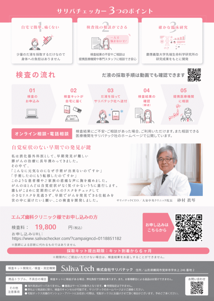 自宅でできるがんリスク検査・サリバチェッカー | 札幌市清田区の歯科医院 | エムズ歯科クリニック